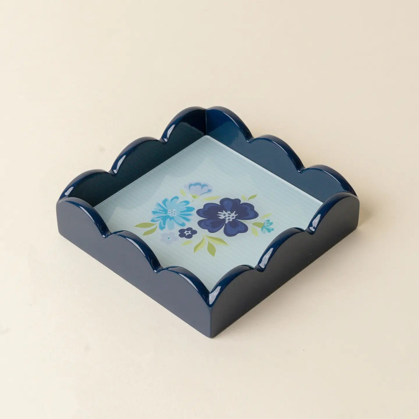 Scallop Trinket Tray is a stylish and functional solution for organizing your precious accessories! These trays keeps your jewelry neatly arranged and accessible, enhancing your vanity, dresser, or nightstand effortlessly. Darling scalloped rim detail Featuring floral or festive design Store bracelets, earrings and more! Glossy finish Dimensions: 4”L x 4”W x 1”H