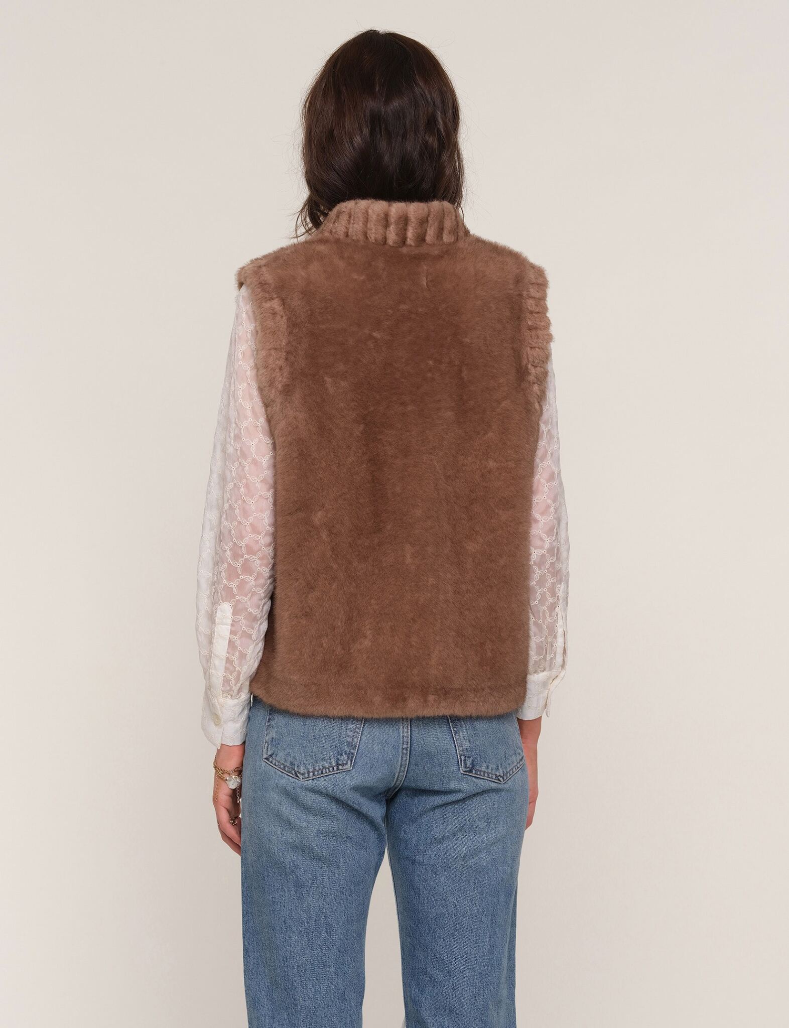 The Hosk Vest is made from a soft, faux fur. It has a relaxed fit, making it perfect to layer over your sweaters.