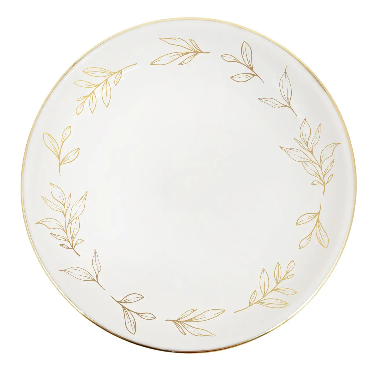 DETAILS: • Gold Leaves Design • 3” x 3” Circle Dish • Ceramic Jewelry Dish • Color: Cream and Gold • Box Size: 3.63” x 3.63” x 1”