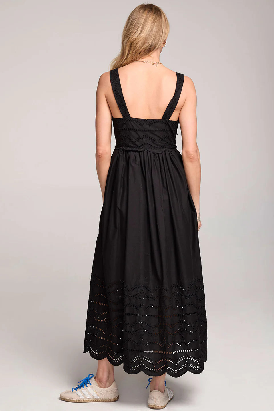 Wide straps frame an open neckline, adding a charming touch, while delicate scallop detailing at the hemline completes the look with subtle sophistication.