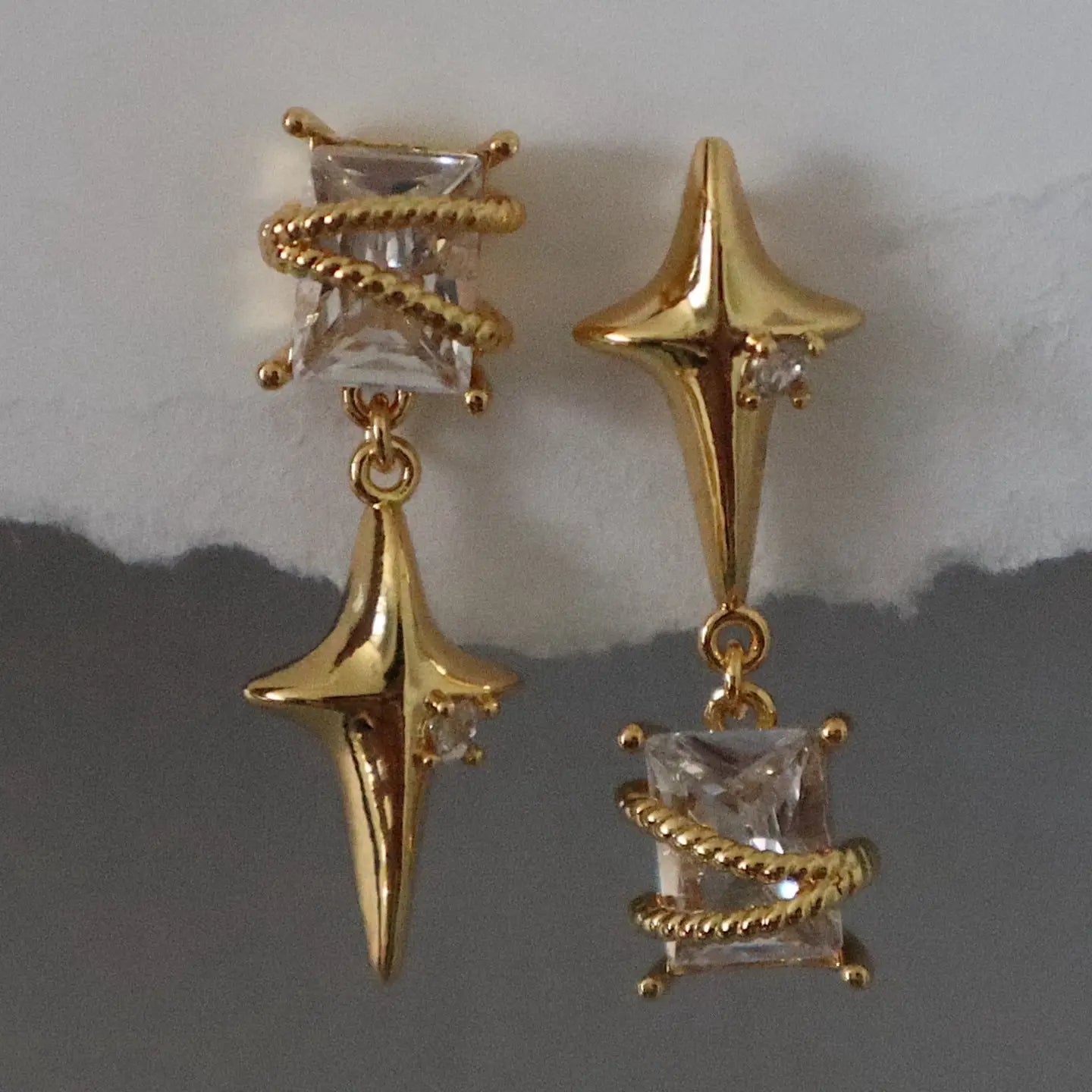 Show off your edgy style in the most glamorous way with these statement worthy dangle earrings. With the earrings in the shape of a star and a zircon dangle for extra sparkle, you'll be the star of the show every time you wear them. -stainless steel, gold plated