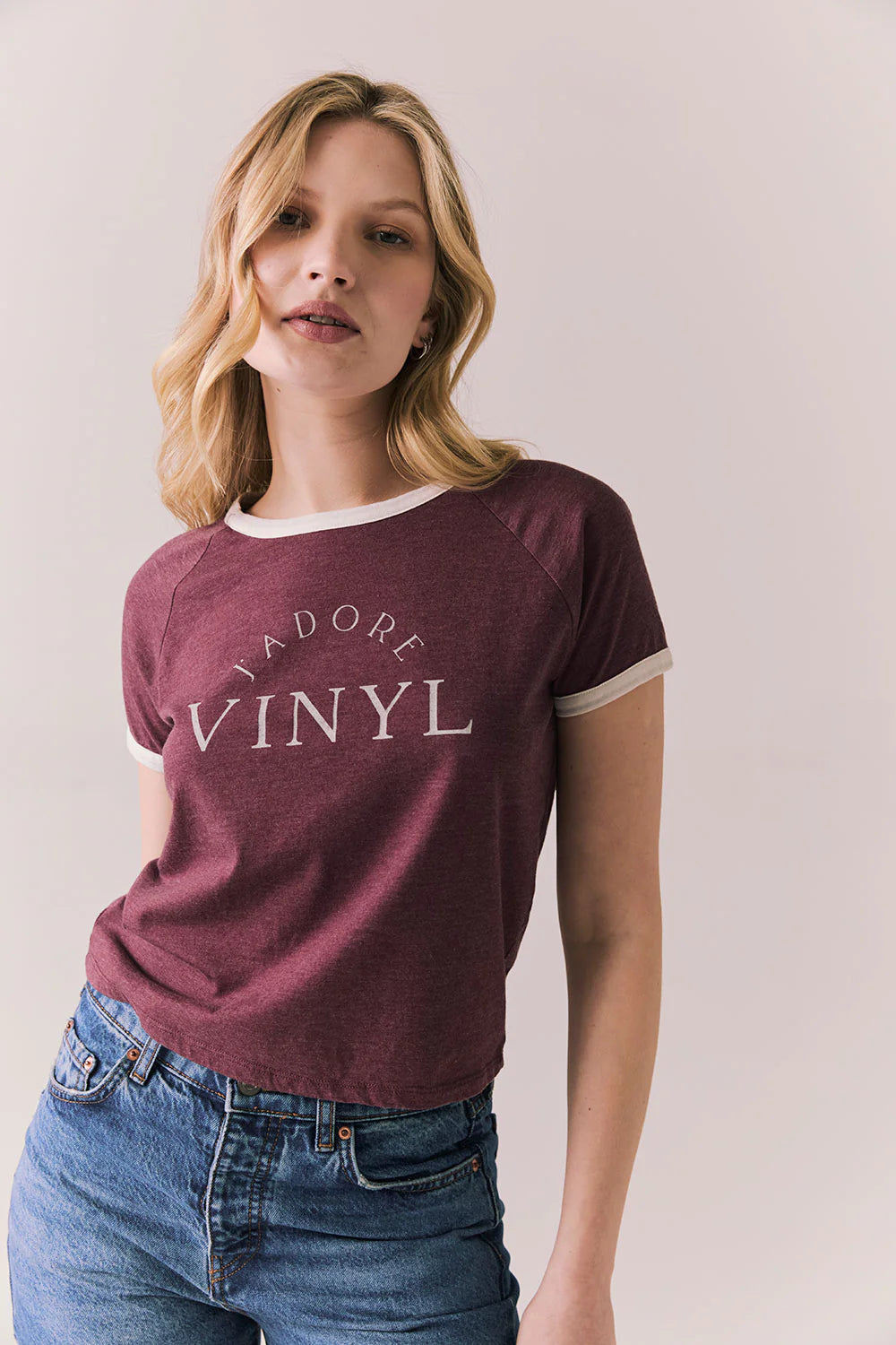 The J’adore Vinyl Tee channels vintage French-girl charm in a rich fig-purple hue.