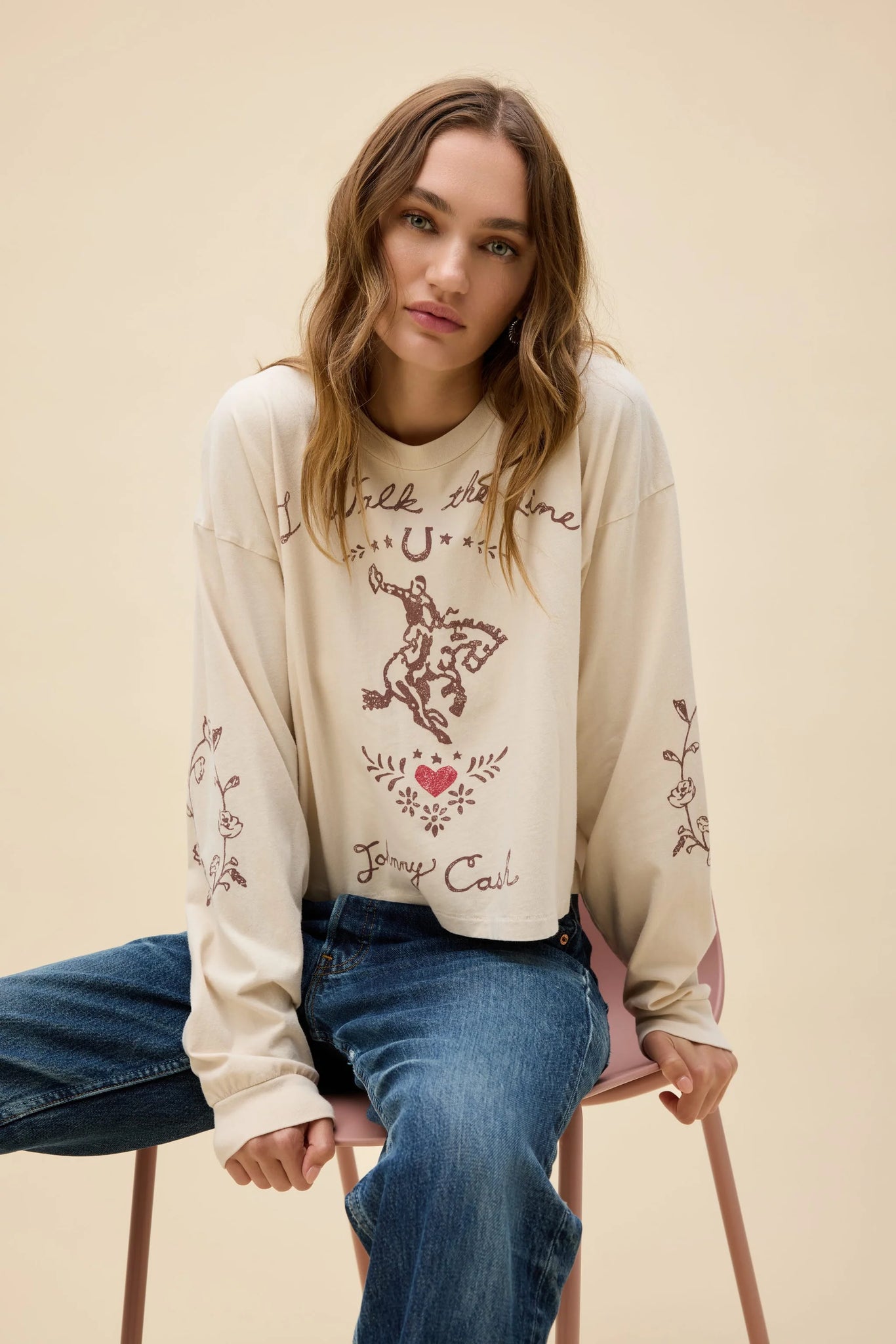 Rope in our latest country arrival - the legendary Johnny Cash and the echo of his charting track I Walk the Line hit the newest addition to the lineup, the boxy fit Meet & Greet Long Sleeve.