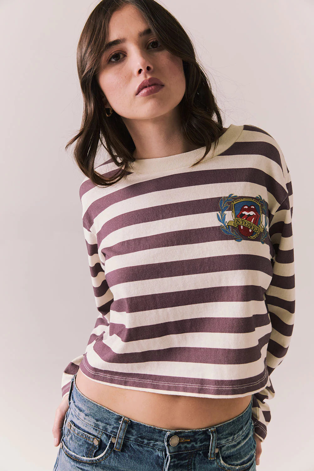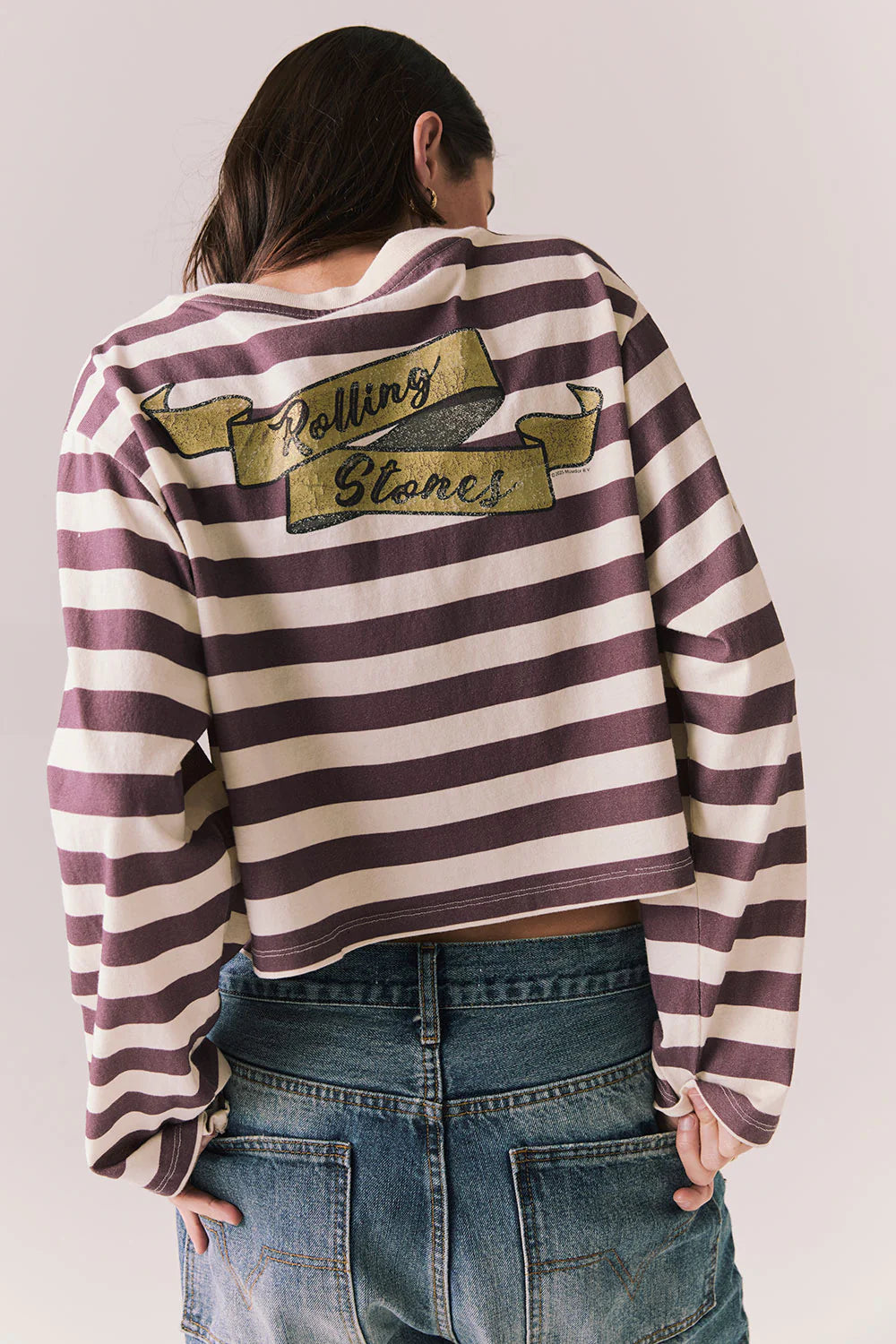 The Rolling Stones Rugby Stones Logo Long Sleeve channels that same bold, effortless energy with sporty stripes, a slight crop, and roomy long sleeves.